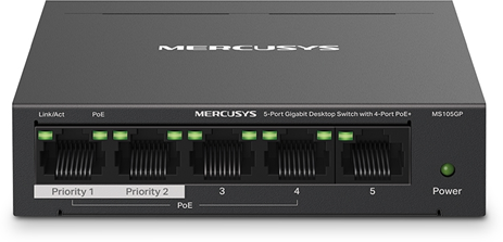 Коммутатор Mercusys MS105GP Настольный коммутатор с 5 гигабитными портами (4 порта PoE+) информация: