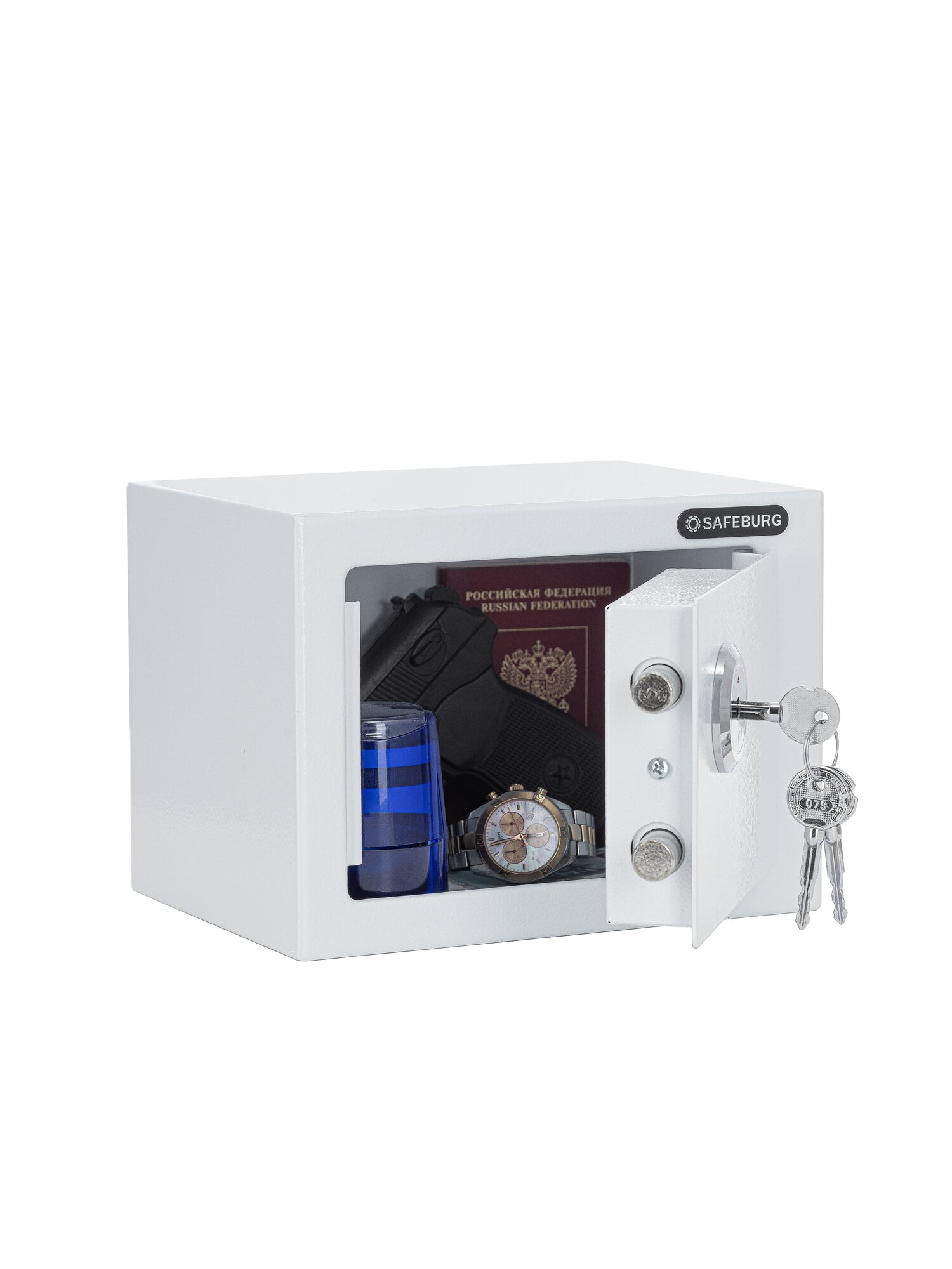 Сейф для денег и документов SAFEBURG SB-170K WHITE крестовый ключевой замок, для дома/квартиры/офиса, 17х23х17 см информация: