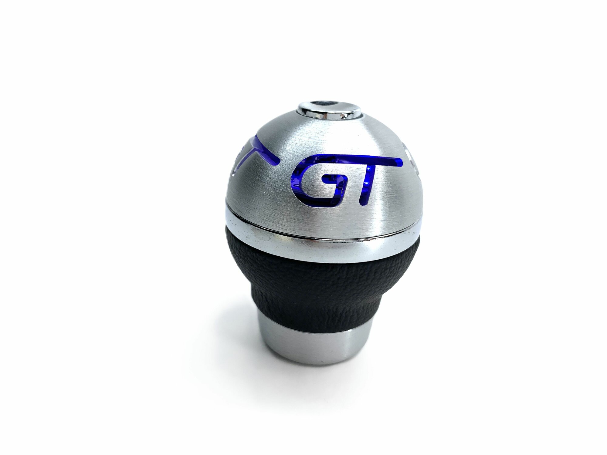 Ручка КПП GT черный кожа шар с синей подсветкой информация: