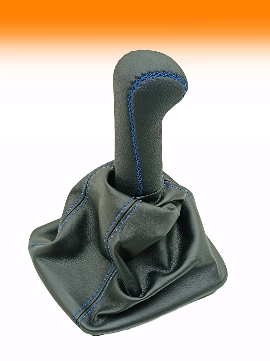 Ручка КПП на ВАЗ-2170, Лада Приора 1 (LADA Priora 1) c ВАЗ-2110 кулисой, ЛЮКС-черная вставка, черный с синей строчкой 1 500 ₽