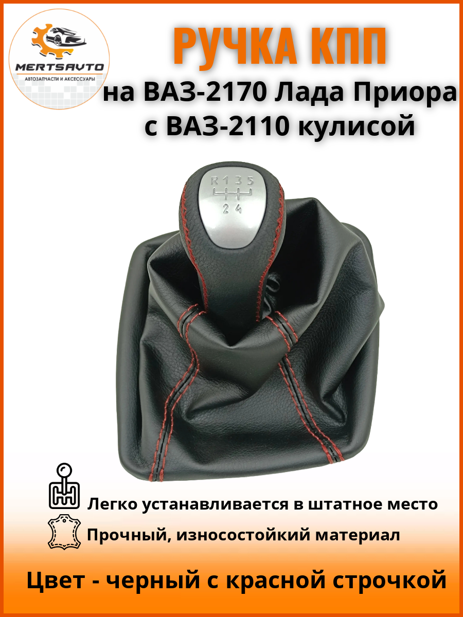 Отзывы на Ручка КПП на ВАЗ-2170, Лада Приора 1 (LADA Priora 1) c ВАЗ-2110 кулисой люкс-серебро, ручка коробки переключения передач, черный с красной строчкой