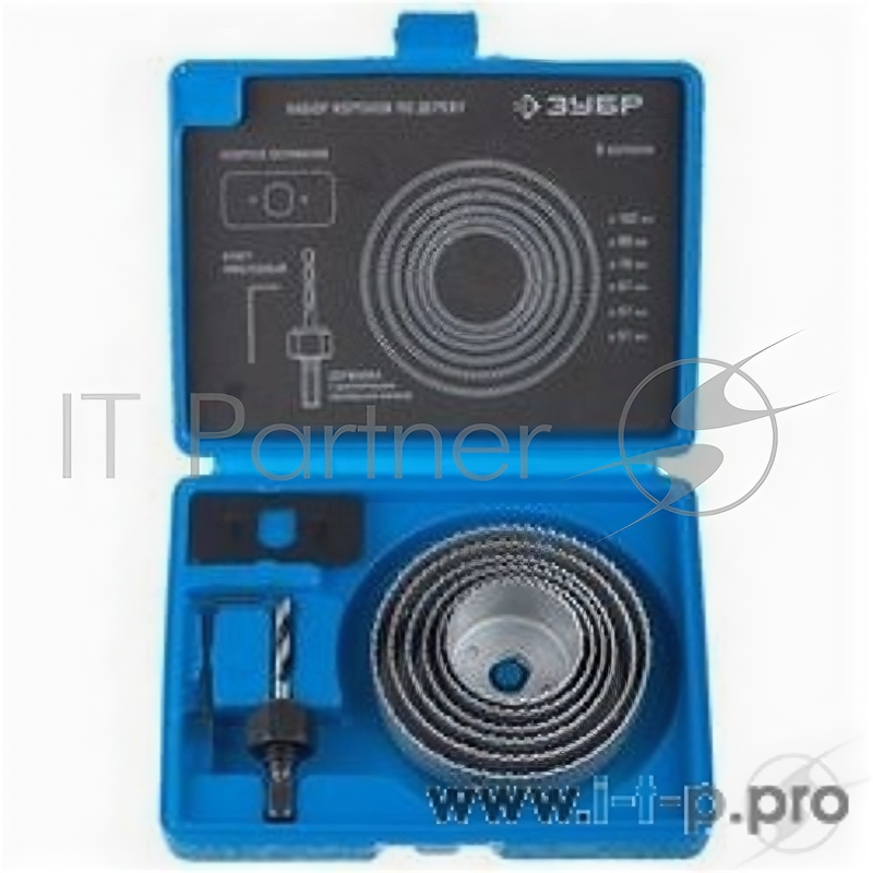 Буры,сверла,долото Набор Зубр "эксперт" Коронки по дереву 51-102мм, державка с опорным основанием, и . информация: