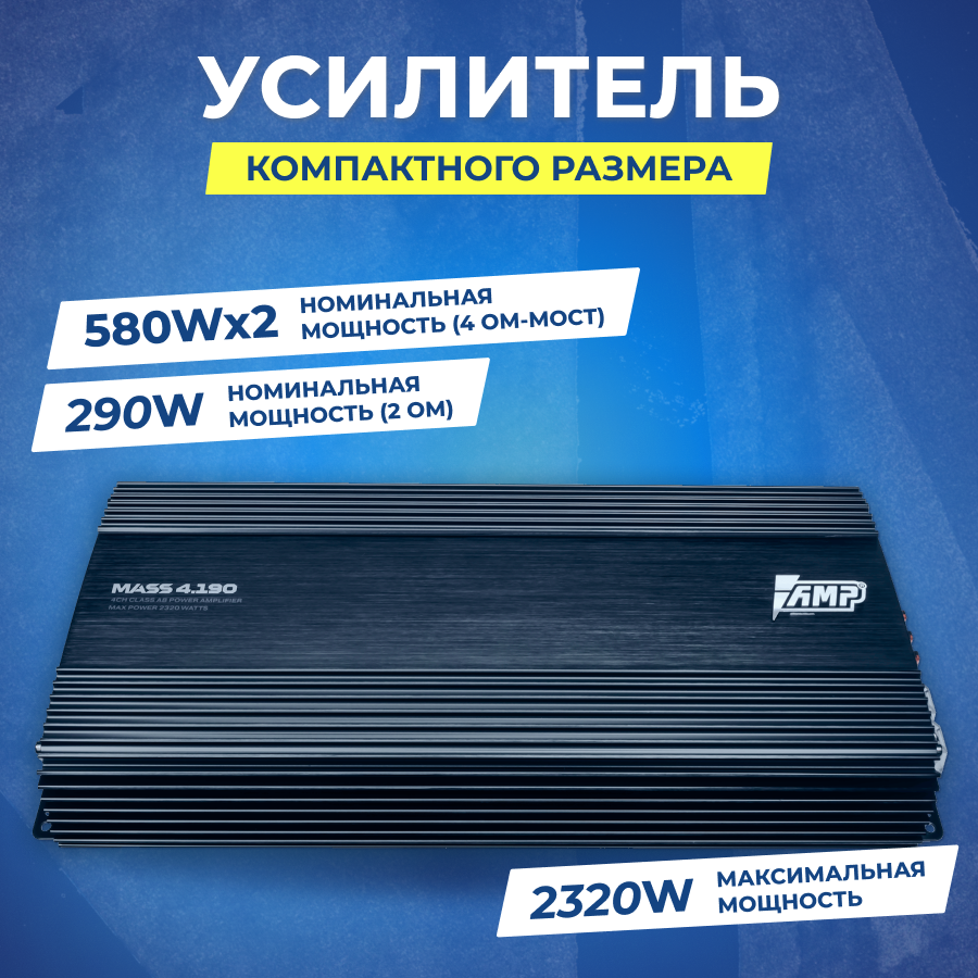 Автомобильный усилитель 4 канала AMP MASS 4.190 информация: