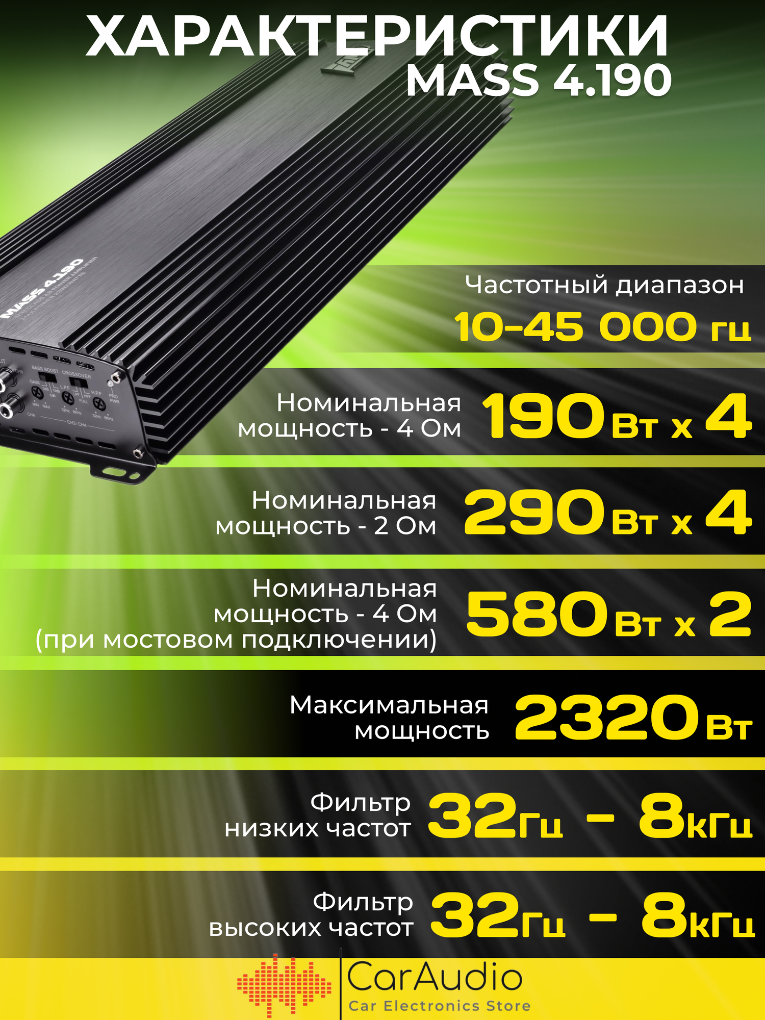 10 цен на Усилитель AMP MASS 4.190, усилитель для авто