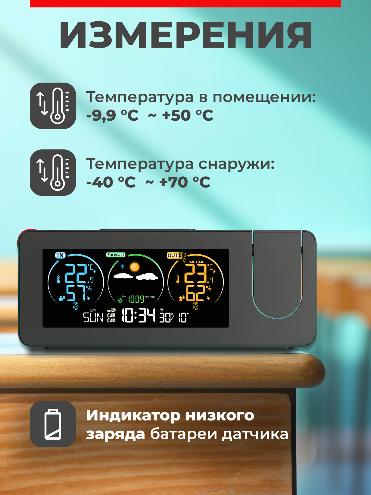 Метеостанция для дома с выносным датчиком, 8 функций, информация: