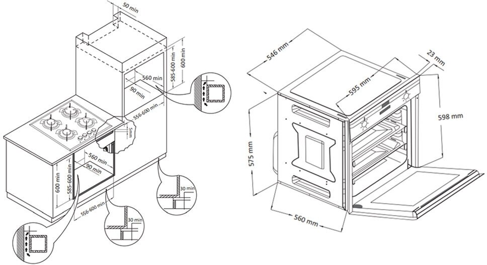 | Особенности конструкции | вертел / дисплей / подсветка камеры / телескопические направляющие / часы |