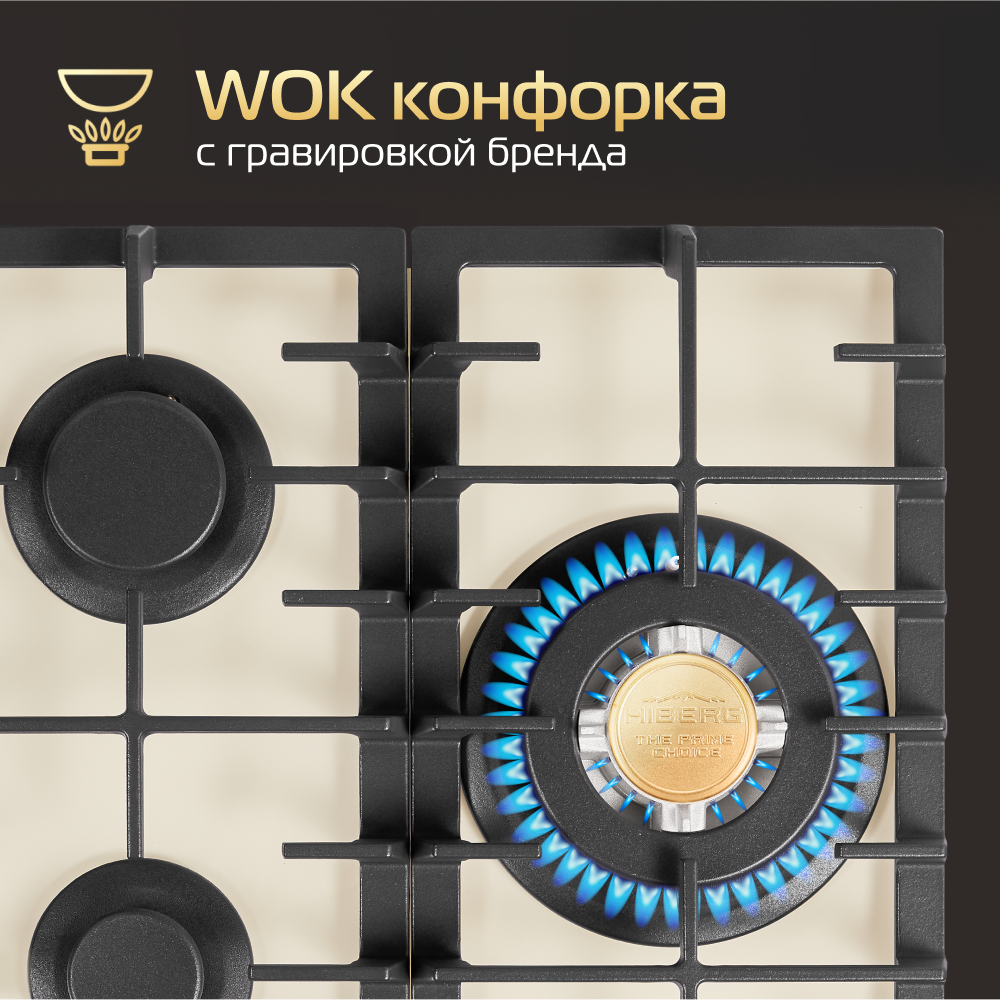 Встраиваемая газовая варочная поверхность HIBERG VM 4535 Y из закаленного стекла в бежевом цвете 27 990 ₽
