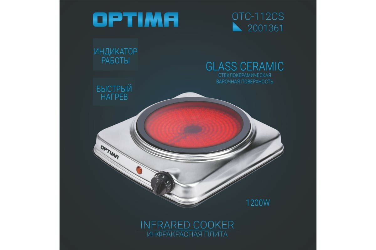 Плита электрическая инфракрасная Optima Otc-112cs (1 стеклокерам.конфорка,индик.работы,1200Вт) Otc-1 информация: