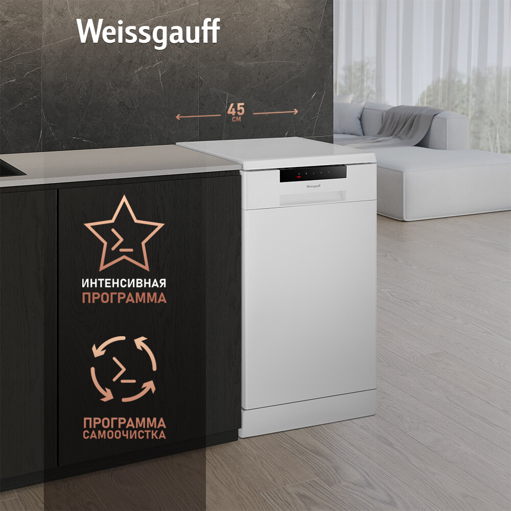 Посудомоечная машина Weissgauff DW 4025 (модификация 2024 года),3 года гарантии, 9 комплектов посуды, 6 программ, быстрый режим, автопрограмма, половинная загрузка, самоочистка, дозагрузка посуды, защита от протечек и перегрева информация: