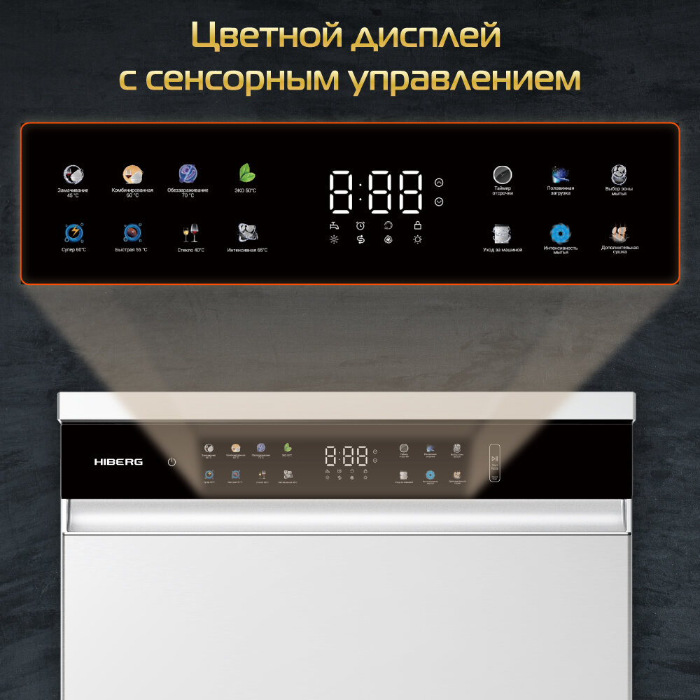Посудомоечная машина HIBERG F68 1530 LB с возможностью встраивания, 8 программ, 15 комплектов, цвет черный 52 500 ₽