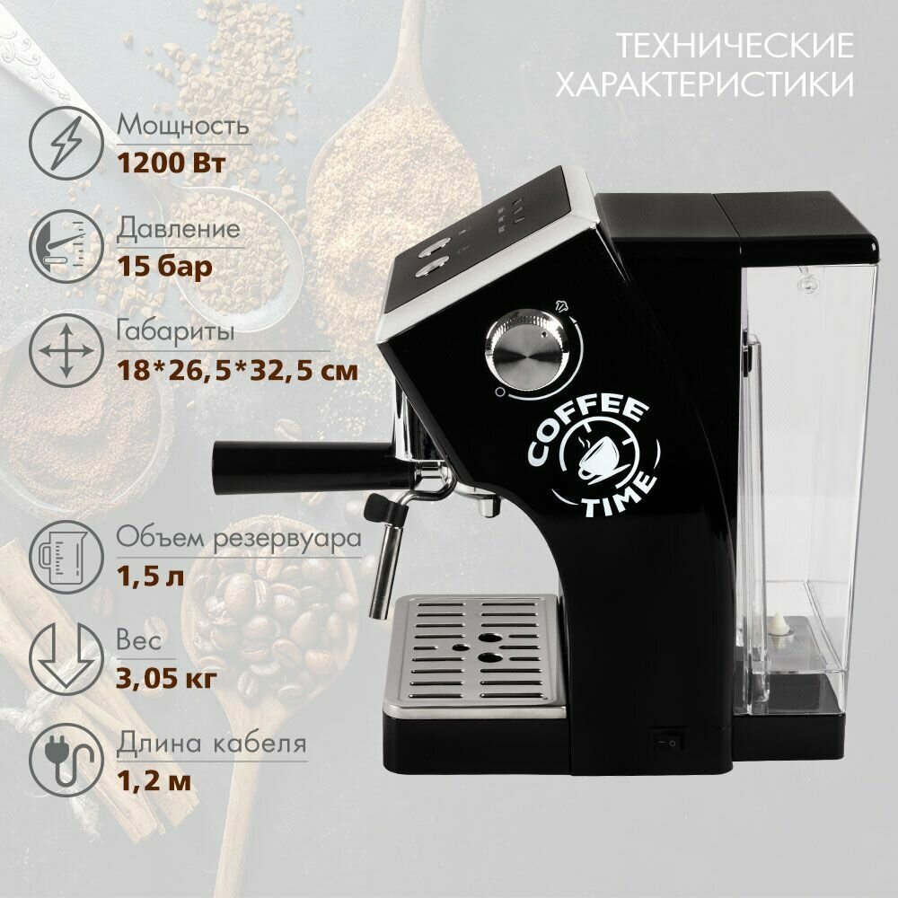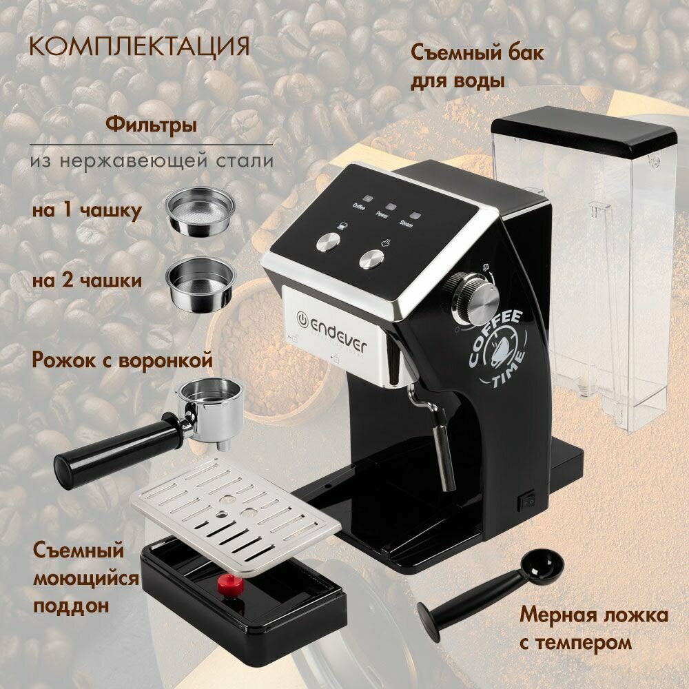 Кофеварка рожковая Endever Costa-1085 / 1200 Вт / 15 Бар / 1,5л информация: