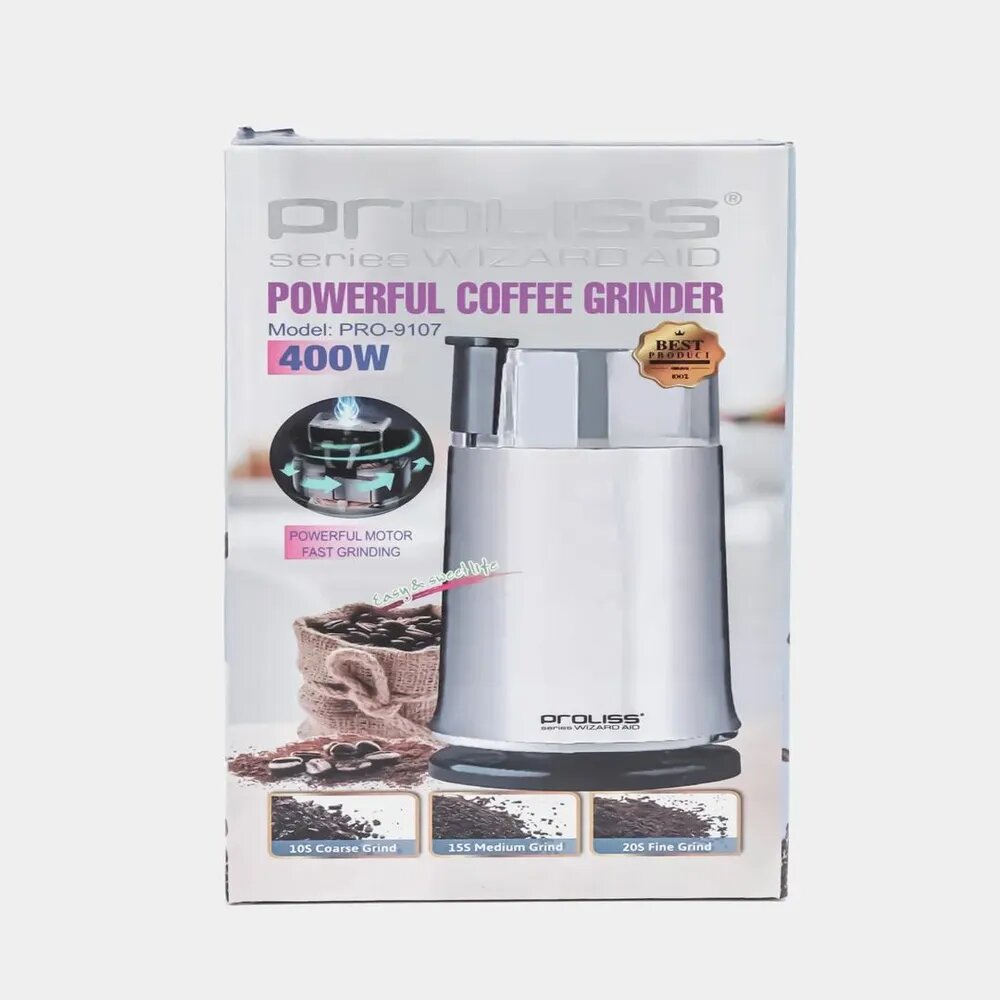 | Дополнительная информация | Модель: PRO-9107 Материал изделия: нержавеющая сталь Количество степеней помола кофе: 1 Мощность устройства: 400 Вт Корпус из качественного пищевого ABS-пластика Лезвия из высококачественной нержавеющей стали измельчают кофейные зерна максимально быстро и эффективно. Вместимость контейнера 50 г Внутренний отсек для удобного хранения шнура. Прозрачная крышка для контроля за процессом работы. |