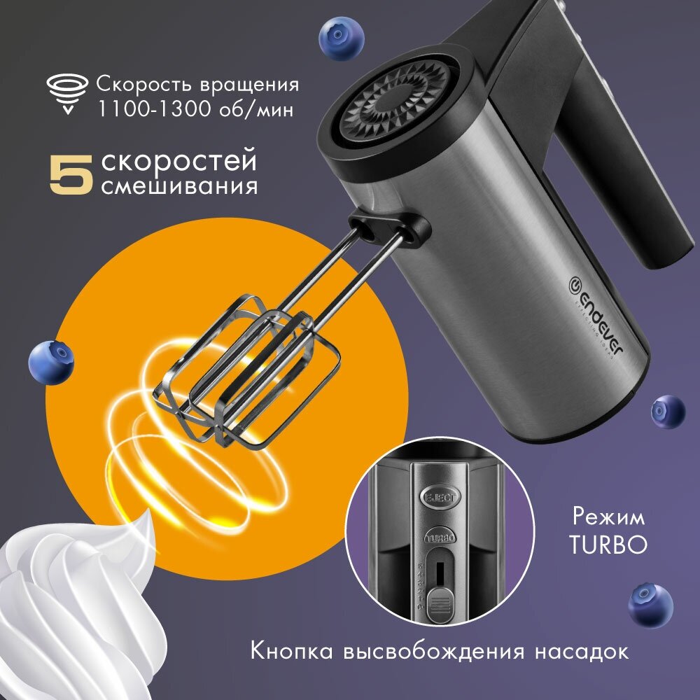Ручной миксер ENDEVER SIGMA-07 / 500 Вт / 5 скоростей / 2 комплекта насадок информация: