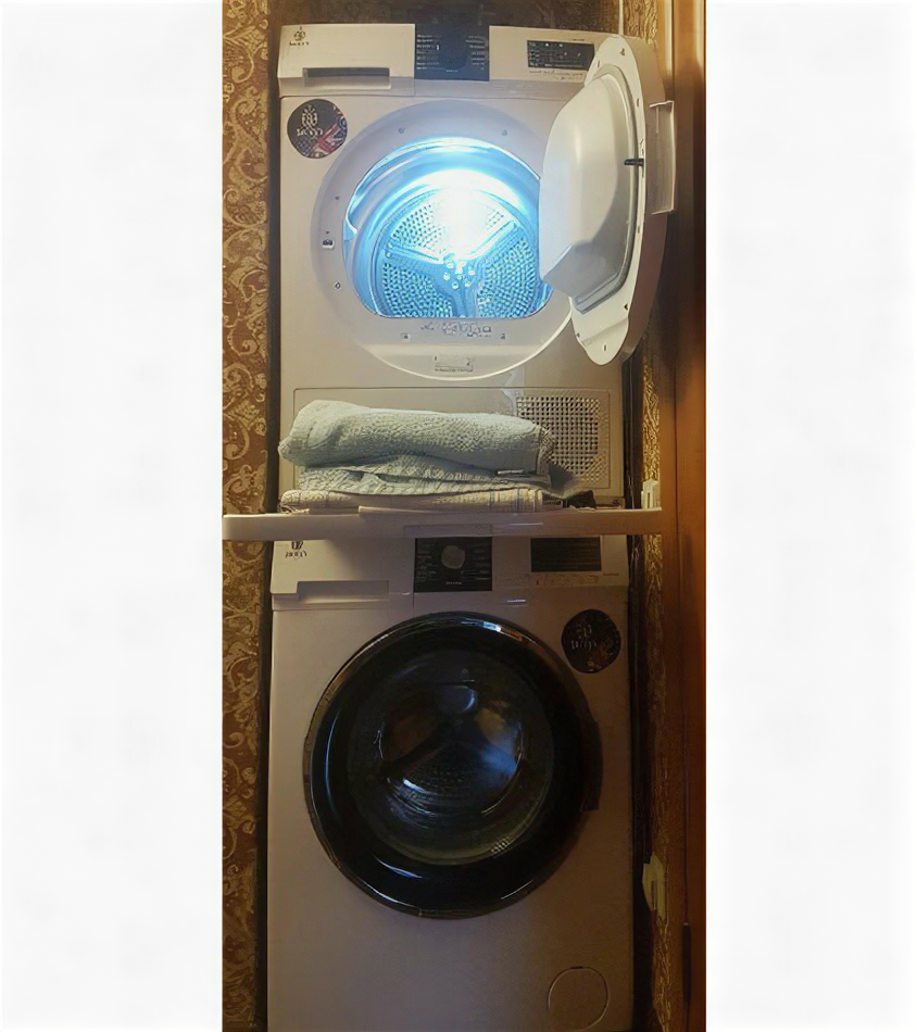 10 цен на Jacky's комплект для установки в колонну Стиральная машина Jacky's JW F0943BTD + Сушильная машина Jacky's JTD 7WI0 + Соединительный кит c выдвижной полкой