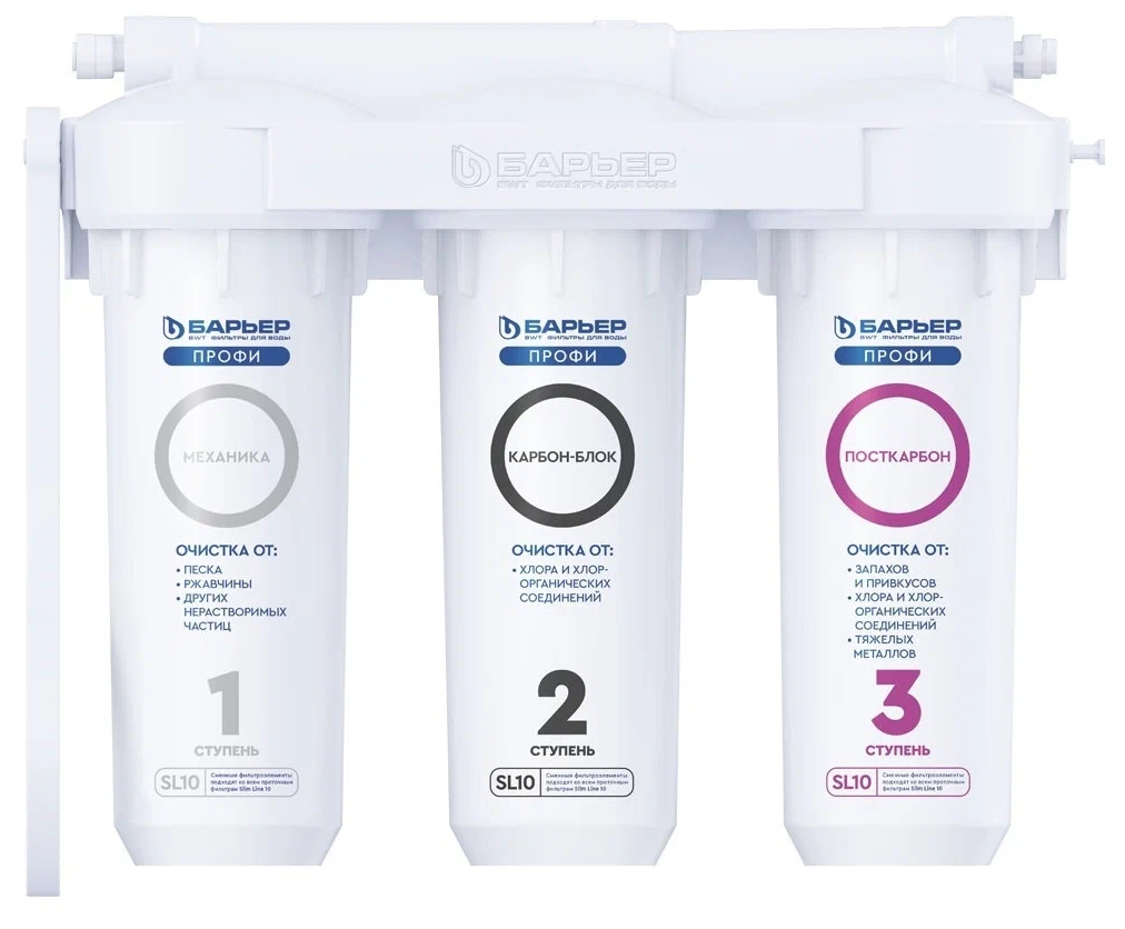 Фильтр под мойку для очистки воды трехступенчатый БАРЬЕР профи Стандарт Лайт, удаляет хлор