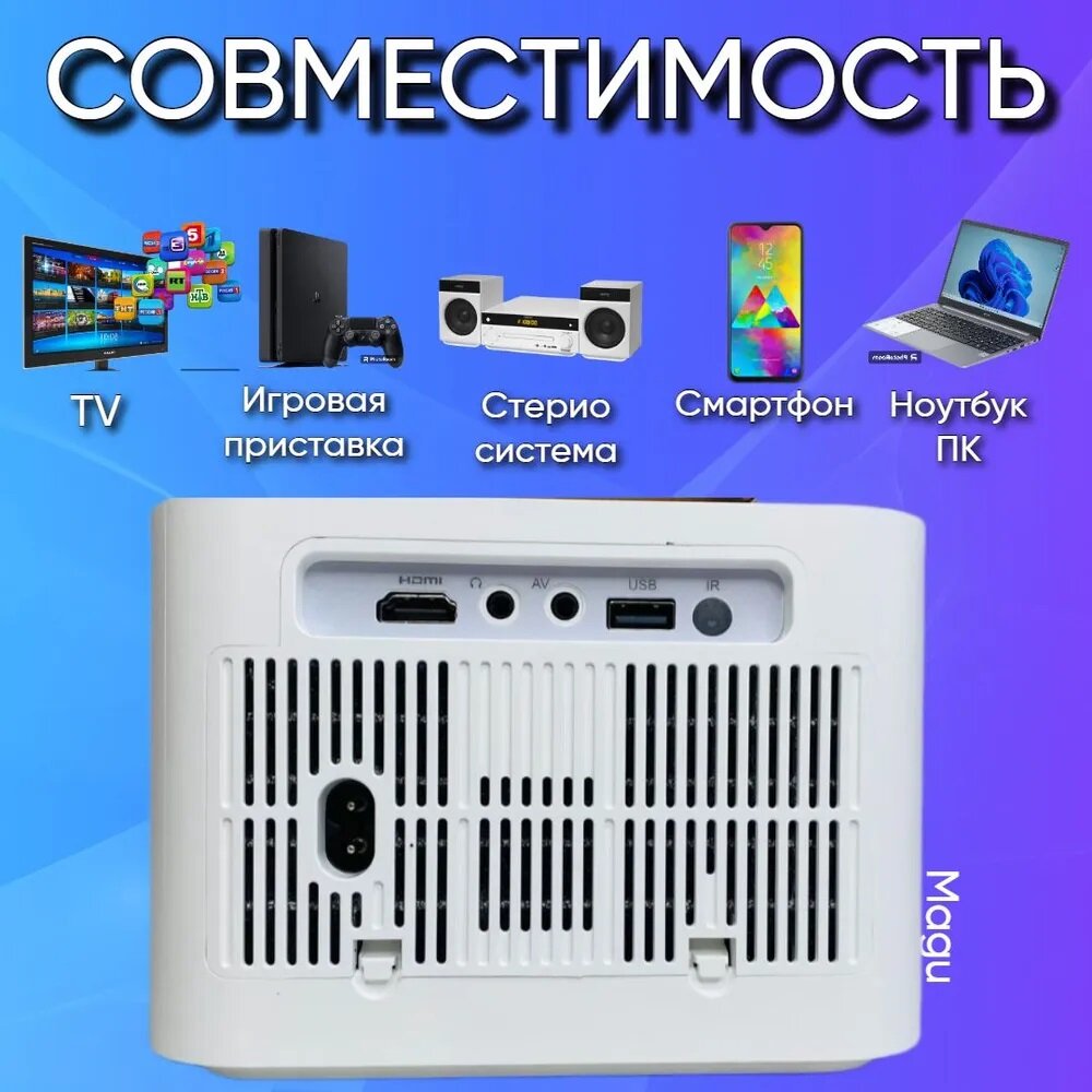 Мини проектор 4К с высоким разрешением 1920х1080 для фильмов и мультфильмов