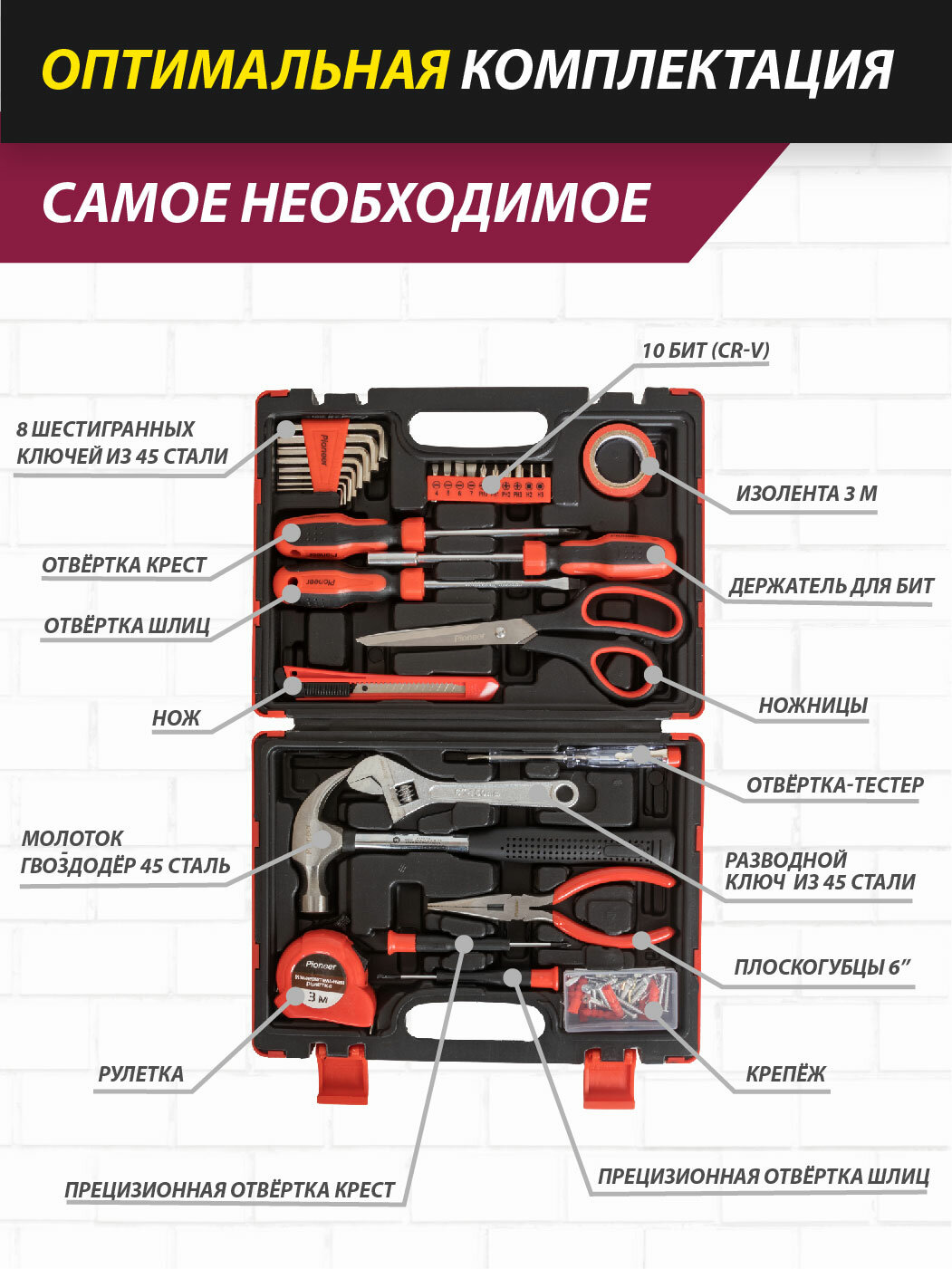 10 цен на Набор инструментов Pioneer TSH-112-01 для дома, 112 предметов, универсальный, в чемодане, для ремонта и декоративных работ