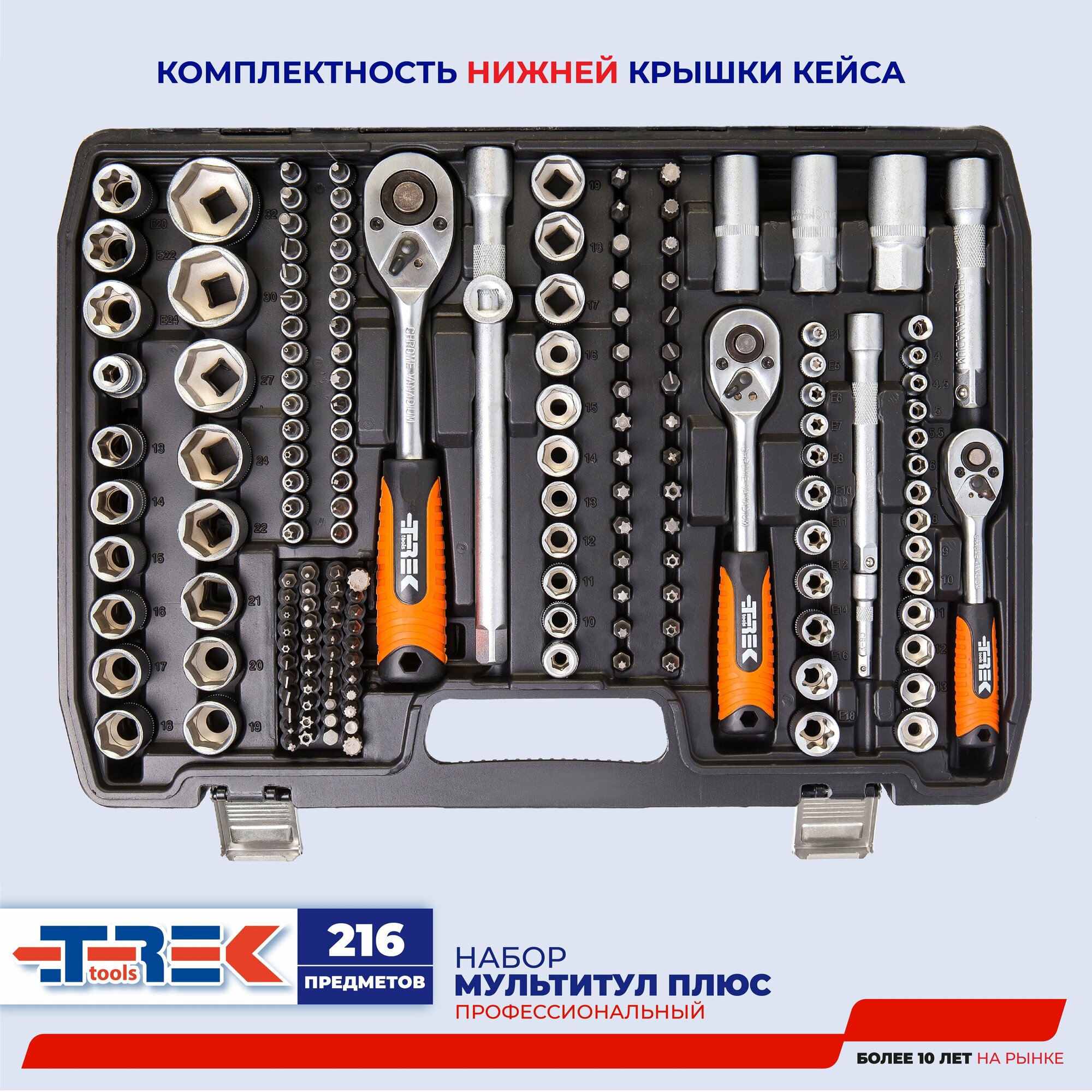 Отзывы на Набор инструментов 216 предметов TREK (1/2", 1/4", 3/8") ключи, головки, биты, кейс с металлическими застёжками, TR33216