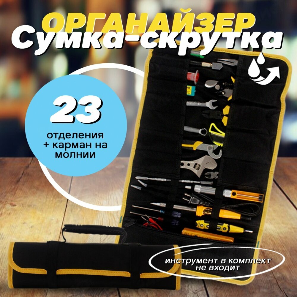 10 цен на Сумка-скрутка чёрно-желтая для хранения и транспортировки инструментов
