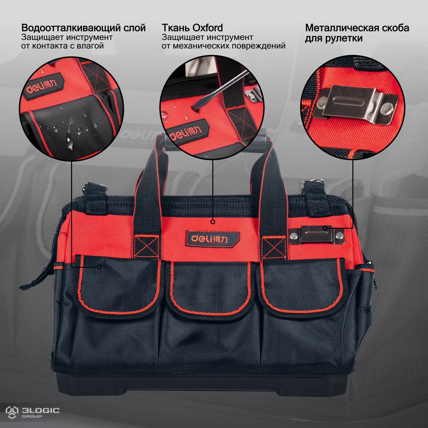 Сумка для инструментов с жестким пластиковым дном Deli DL430316 390 x 200 x 280мм (16 карманов, плечевой ремень, ткань Оксфорд 1680D) 1 988 ₽