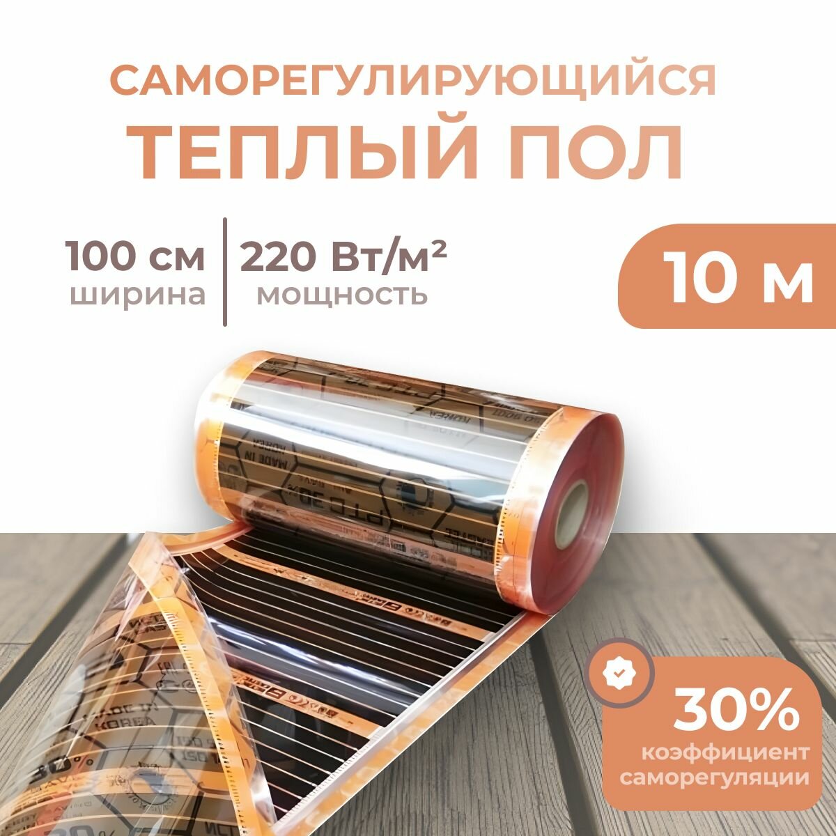 Саморегулирующийся теплый пол EASTEC Energy Save PTC 30% orange ширина100 см. длина 10 м. 11 800 ₽