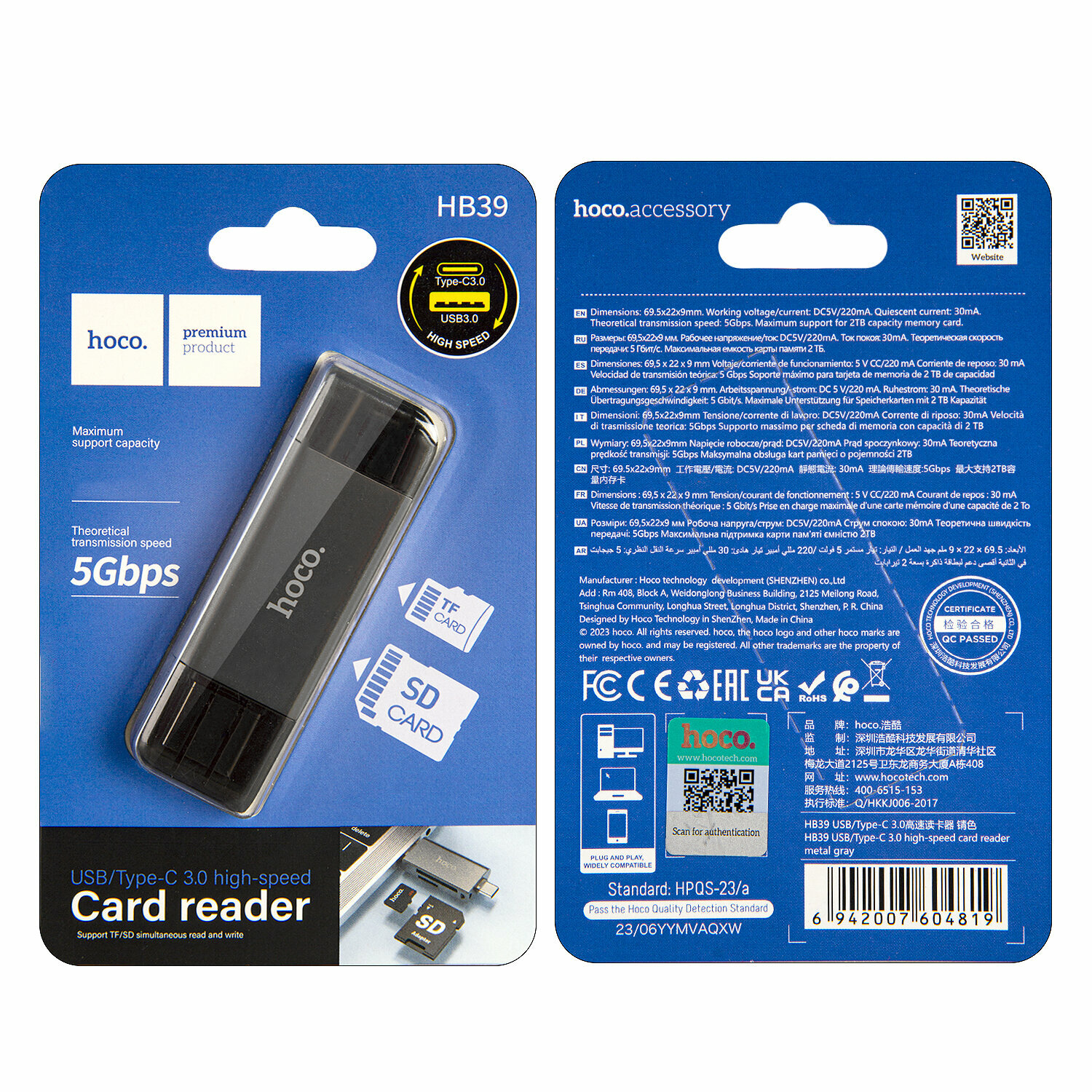 Картридер Hoco HB39 2TB 5Gbps USB3.0, чёрный информация: