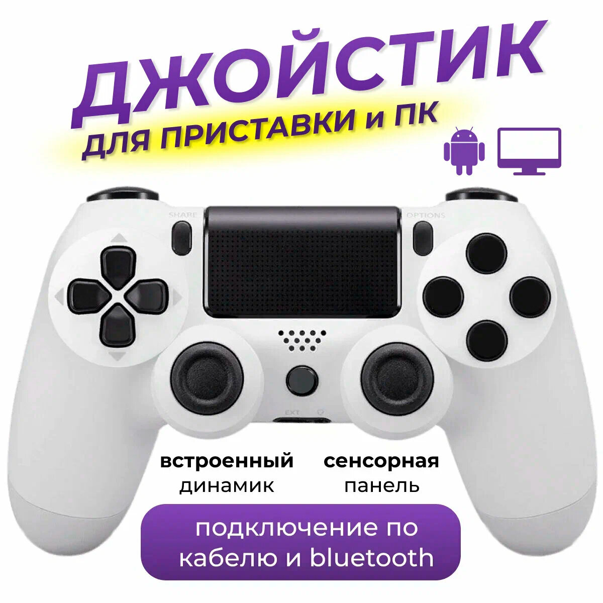 Беспроводной Bluetooth геймпад для playstation 4. Джойстик совместимый с PS4,РС и Мас, устройства Apple, устройства Android белый 1 700 ₽