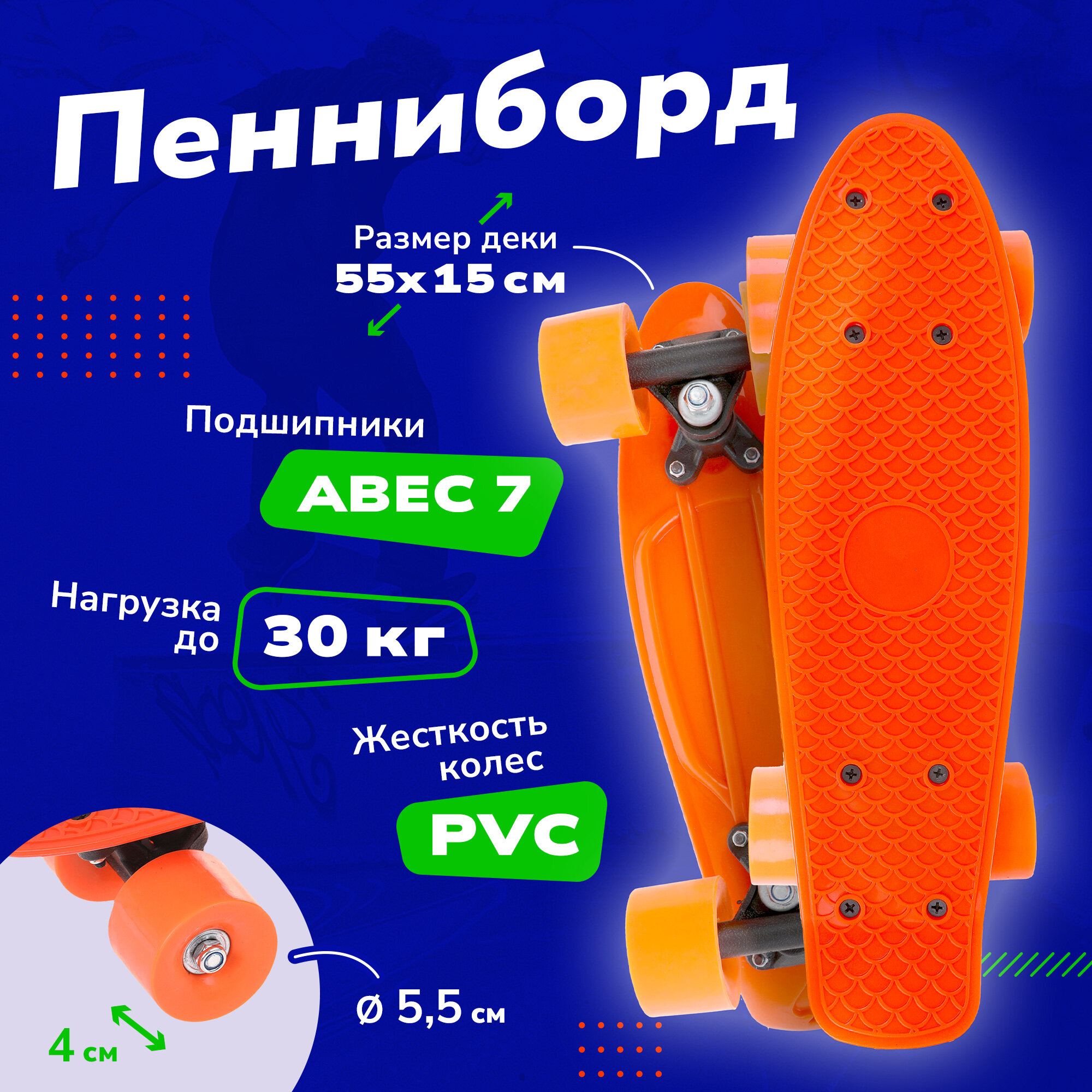 Скейтборд детский с большими колесами оранжевый 1 402 ₽