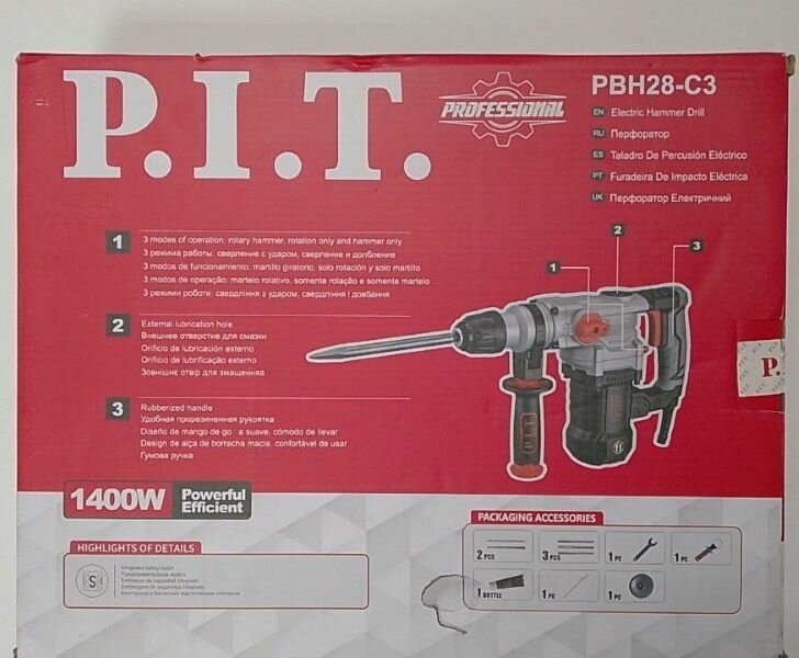 Отзывы на Перфоратор PBH28-C3 мастер PIT вертикальный SDS-plus 3 режима 1,4кВт 5,5Дж 28мм кейс