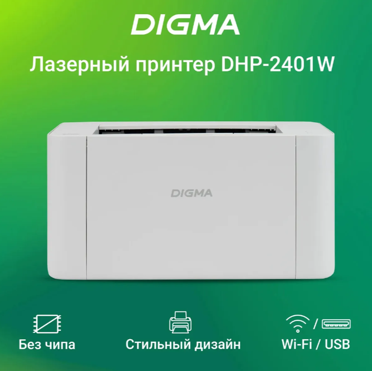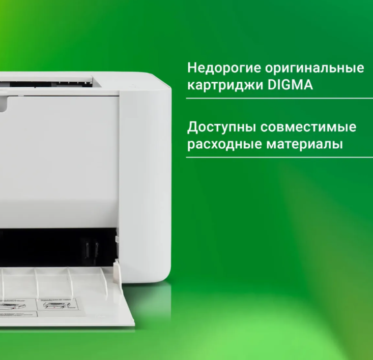 | Комплектация | Лазерный принтер; USB-кабель; Кабель питания; Оригинальный картридж Digma; CD-диск с драйверами; Руководство пользователя; Гарантийный талон; |