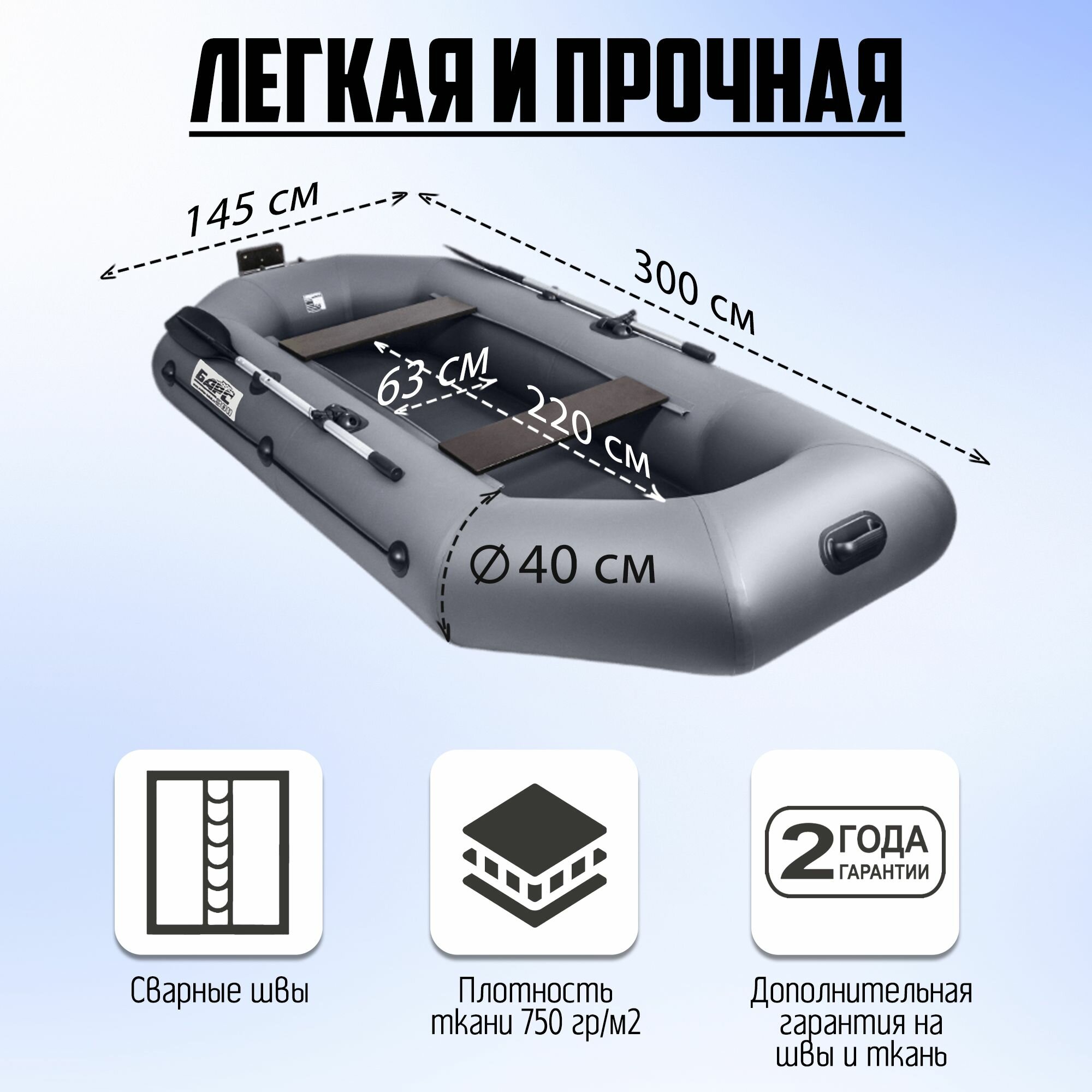 Лодка пвх моторно-гребная Барс 300, трёхместная, графит, навесной транец в комплекте информация: