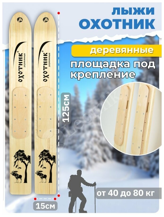 Охотничьи лыжи Маяк охотник 125х15 см, дерево + накладки, дерево информация: