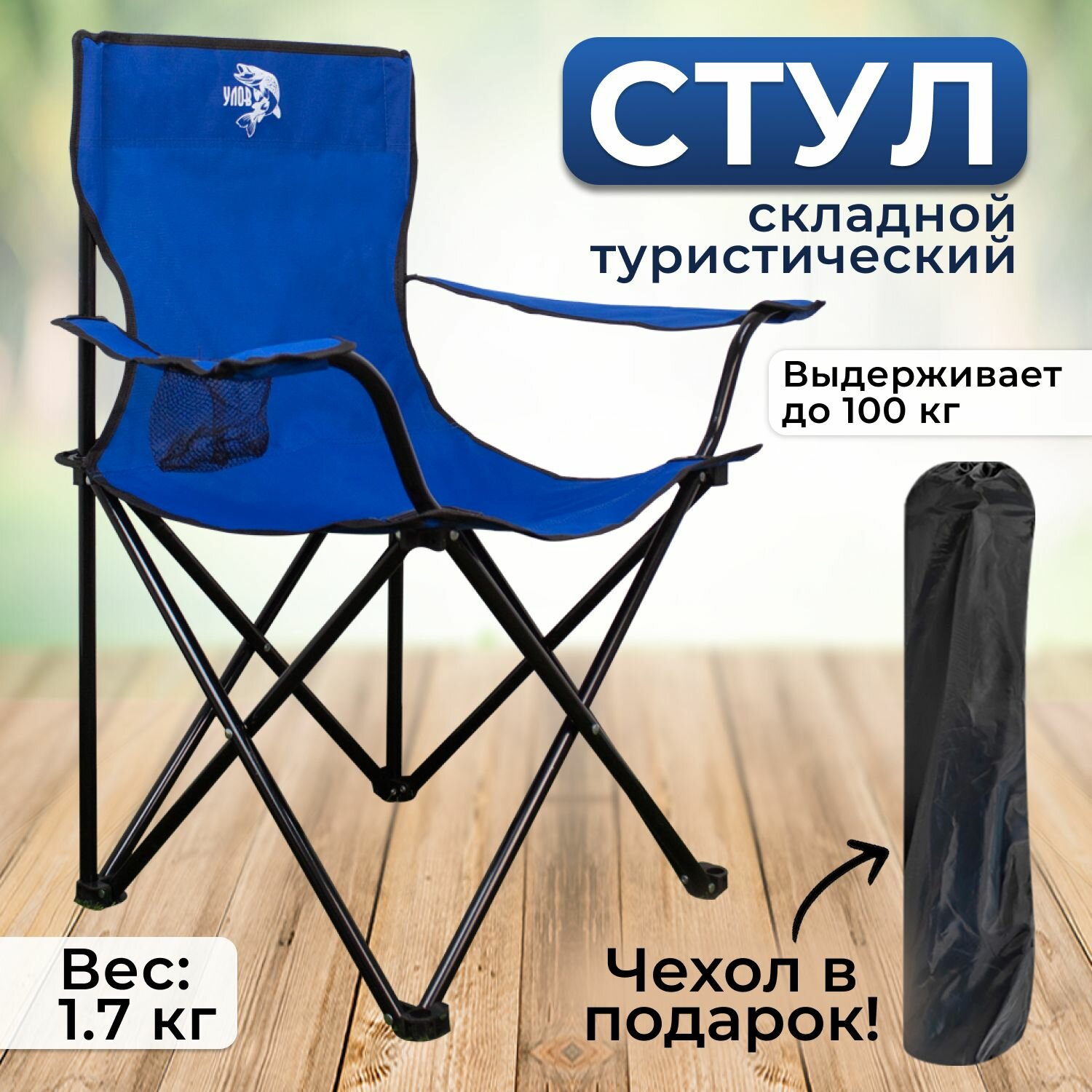 Отзывы на Стул складной туристический "улов" в чехле, походный стул для рыбалки и туризма, синий