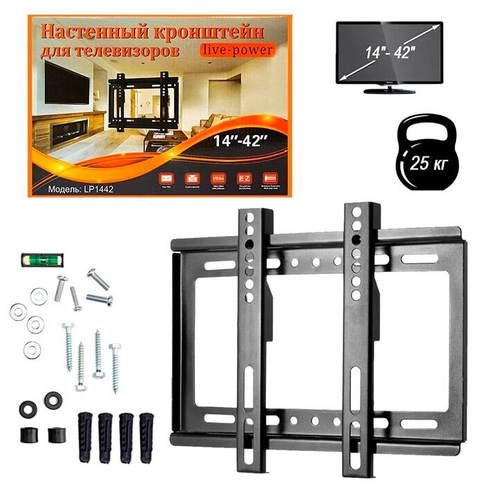 Кронштейн для телевизора 14-42" Live-Power XT-1442 на стену наклонный для ТВ/Монитора до 25кг (Чёрный)