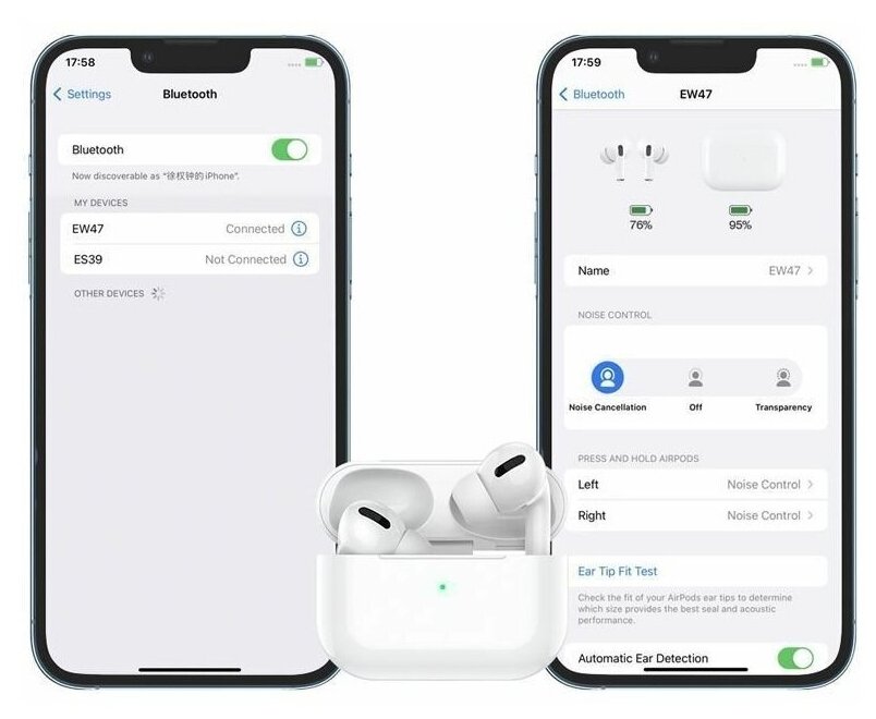 | Функции | вызов голосового ассистента / объемный звук / поиск наушников / регулировка громкости |