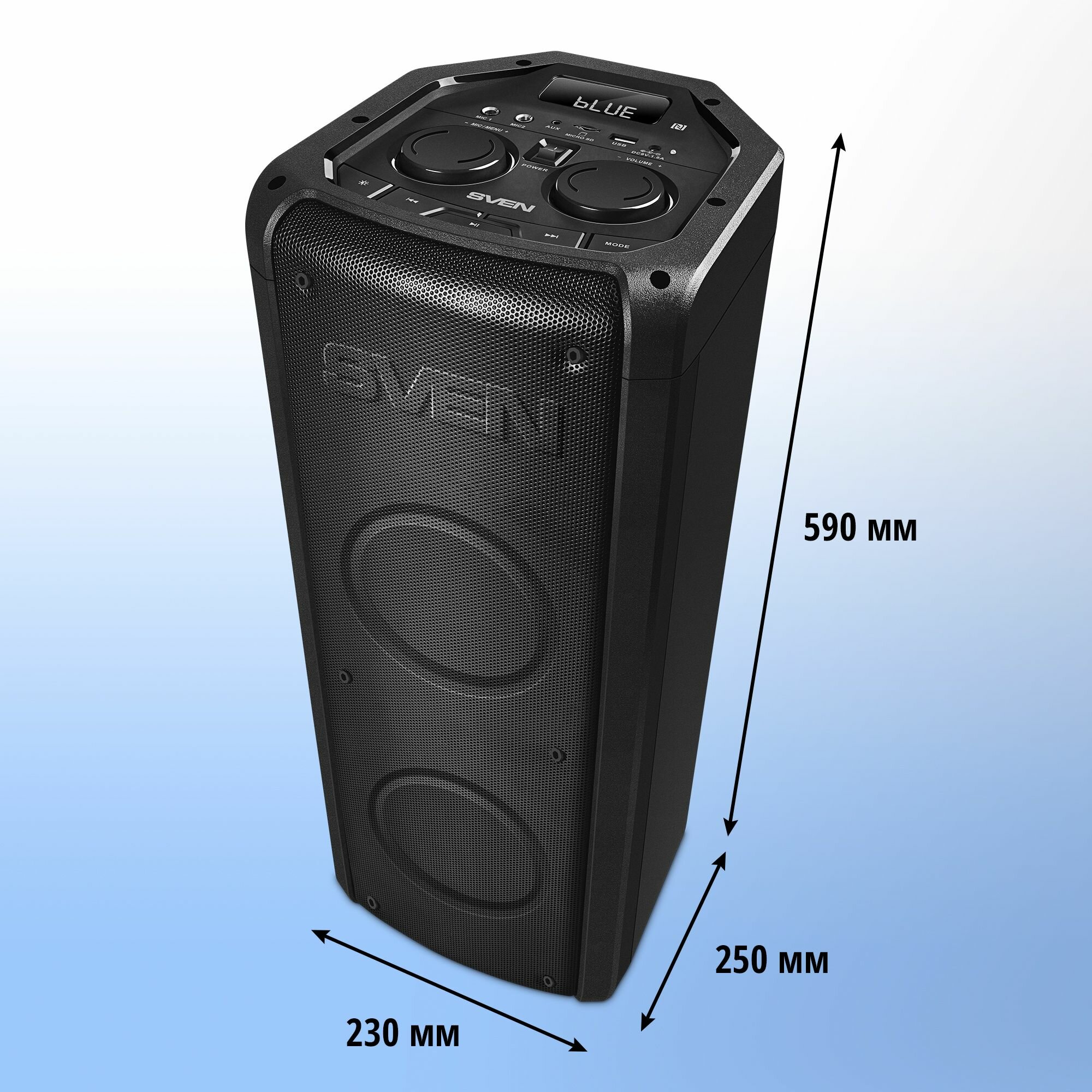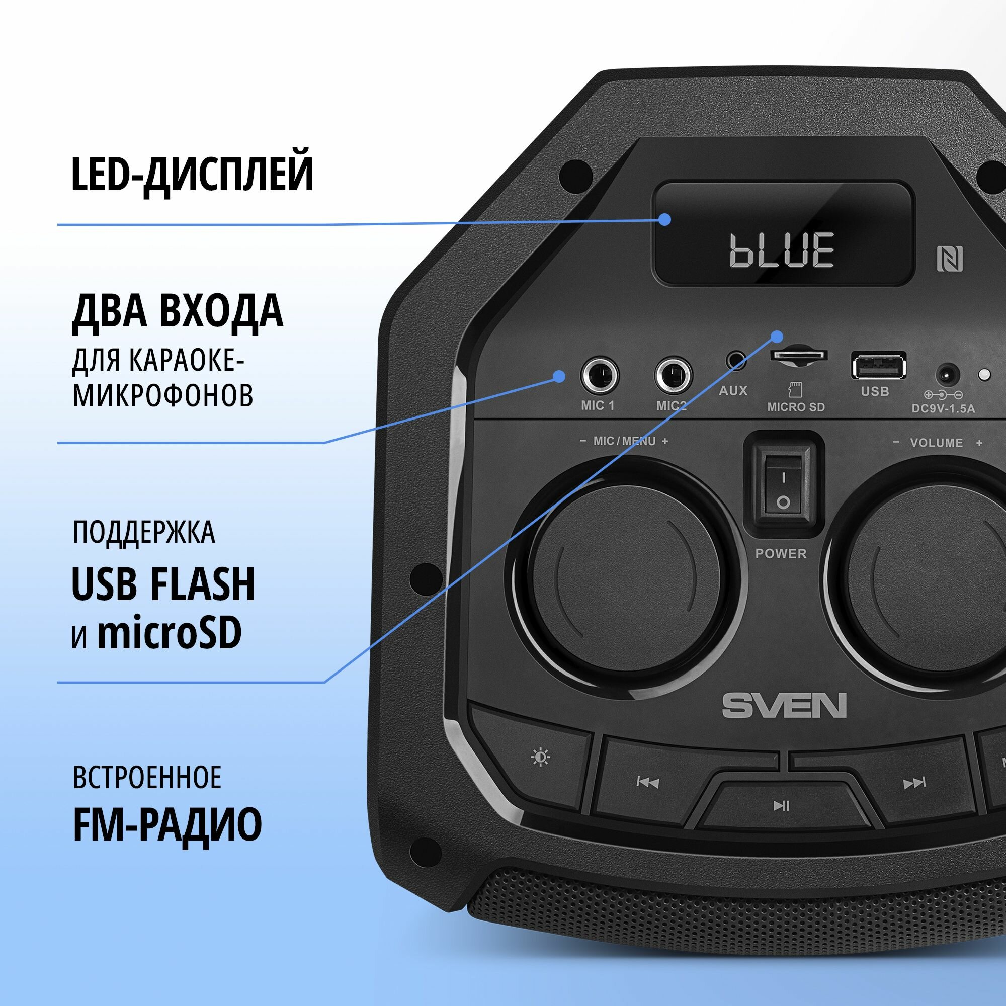 Отзывы на Портативная акустика SVEN PS-710, мощность 100 Вт (RMS), Bluetooth, FM-радио, USB, microSD, LED-дисплей, встроенный аккумулятор