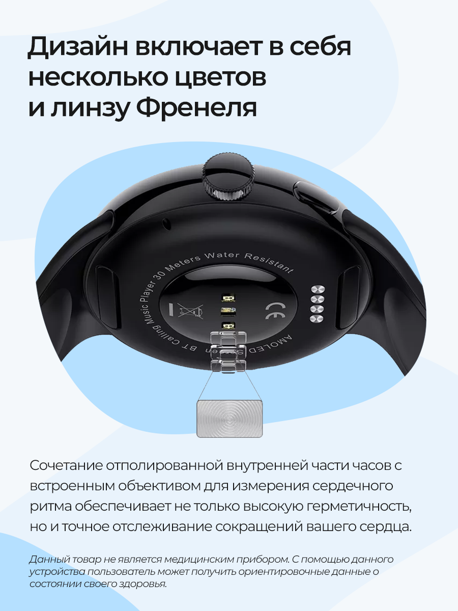 Смарт-часы умные наручные Double A Smart Watch 24 женские и мужские, круглые, водонепроницаемые, черные информация: