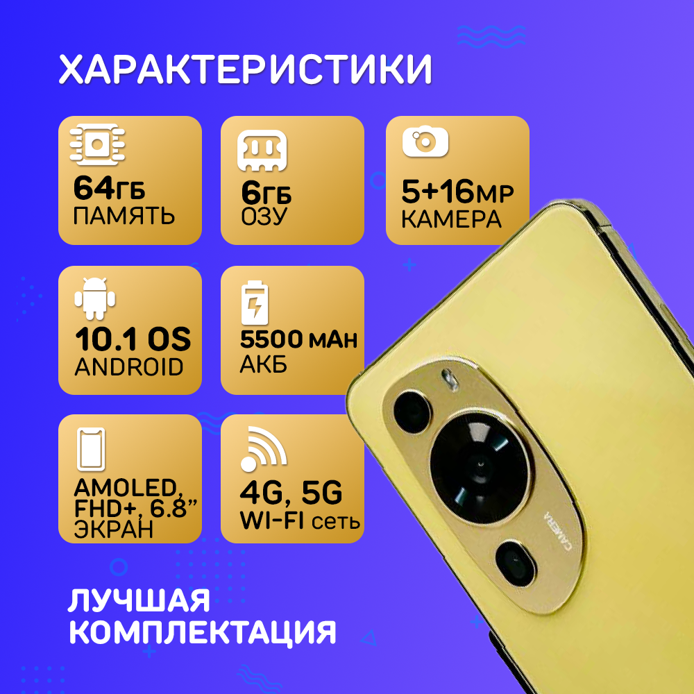 Смартфон Umiio P60 ULTRA 5G, Gold, 64гб встроенной памяти, 6гб оперативной памяти