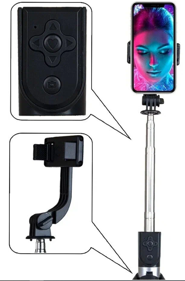 К-07 Фото-штатив, селфи-палка, складная, с кнопкой пультом, черная