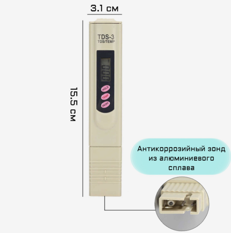 Отзывы на Тестер качества воды, солемер "TDS-3", с термометром, диапазон: 0-9999 ppm, 2 LR44