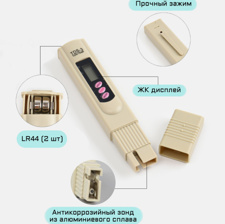 10 цен на Тестер качества воды, солемер "TDS-3", с термометром, диапазон: 0-9999 ppm, 2 LR44