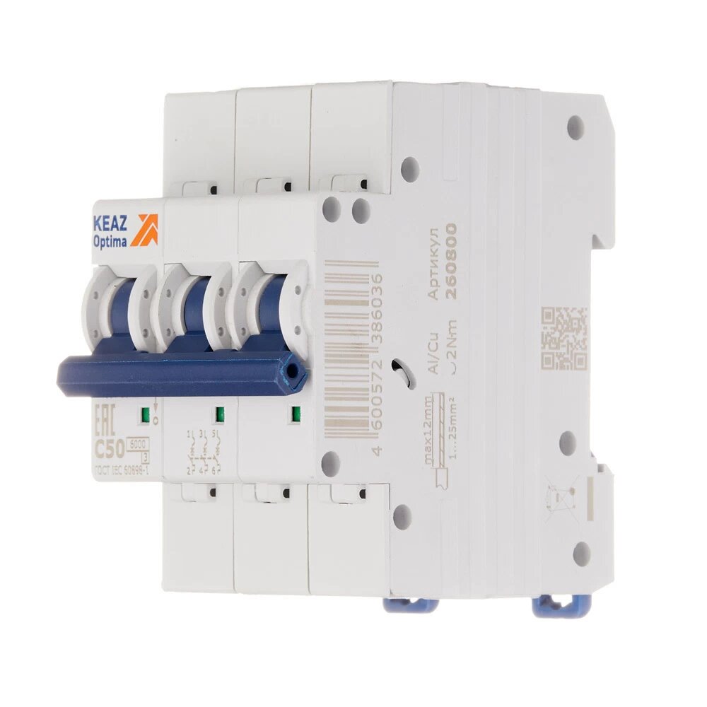 10 цен на Выключатель автоматический модульный 3п C 50А 6кА OptiDin BM63-3C50-УХЛ3 КЭАЗ 260800