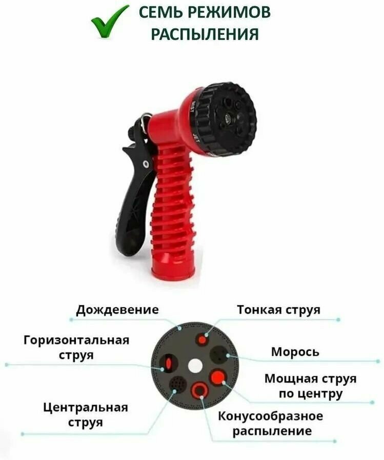 Шланг садовый для полива 3/4 растягивающейся Magic Garden Hose 75 м с распылителем, красный информация: