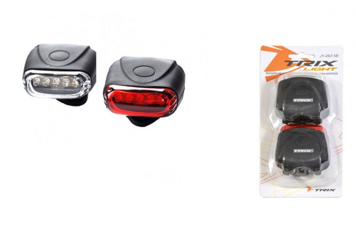 Trix Фонари передний/задний, 1 диод, 2 режима, крепеж на руль/подседельный штырь, батарейки в комплекте, алюминий