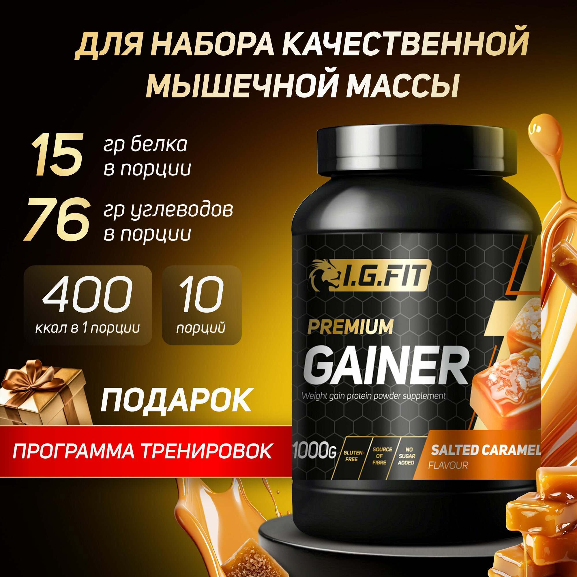 10 цен на Гейнер I.G.FIT, соленая карамель, 1000 г (для набора мышечный массы, для похудения, для спорта, с мерной ложкой)