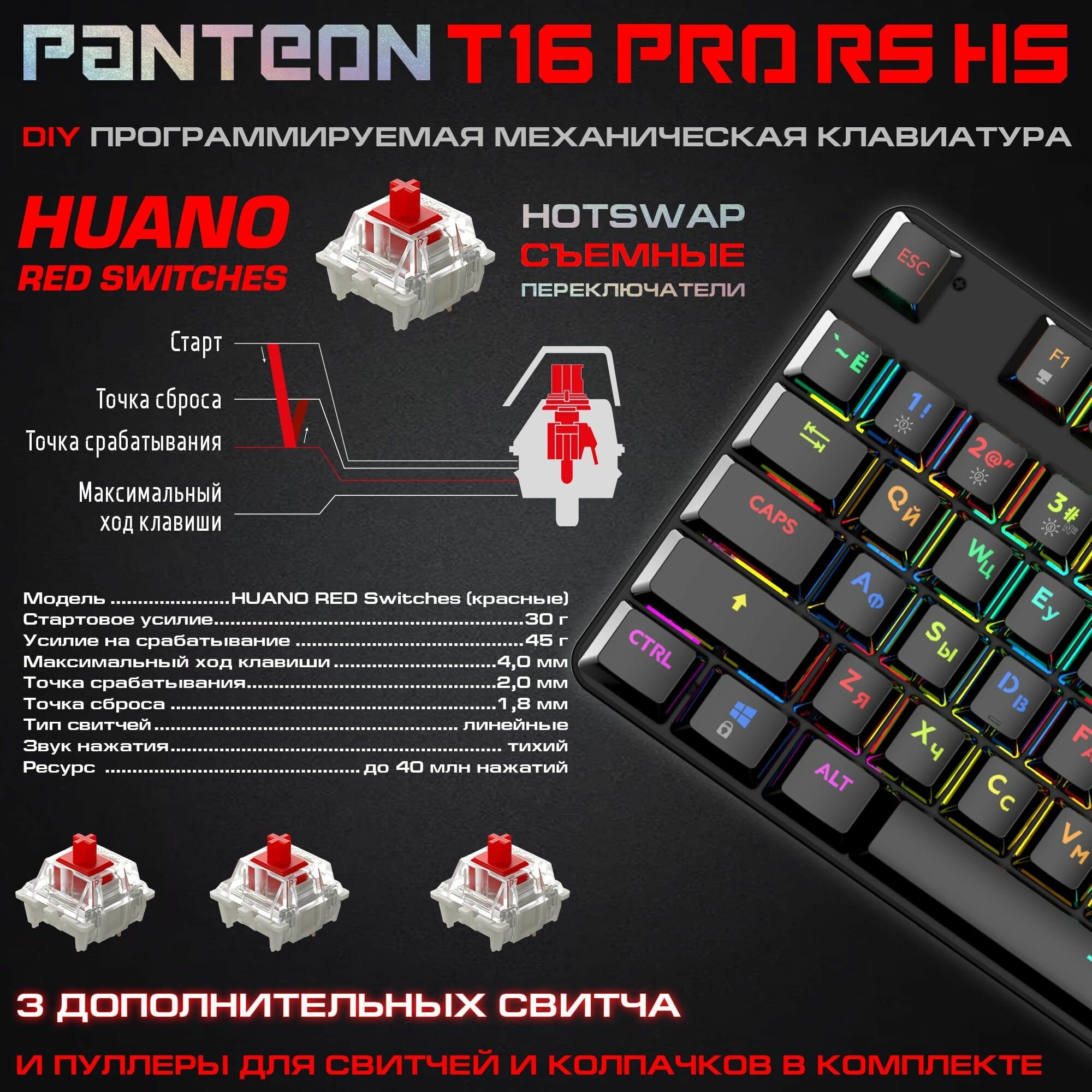 Механическая игровая клавиатура С RGB - подсветкой PANTEON T16 PRO RS HS Black информация: