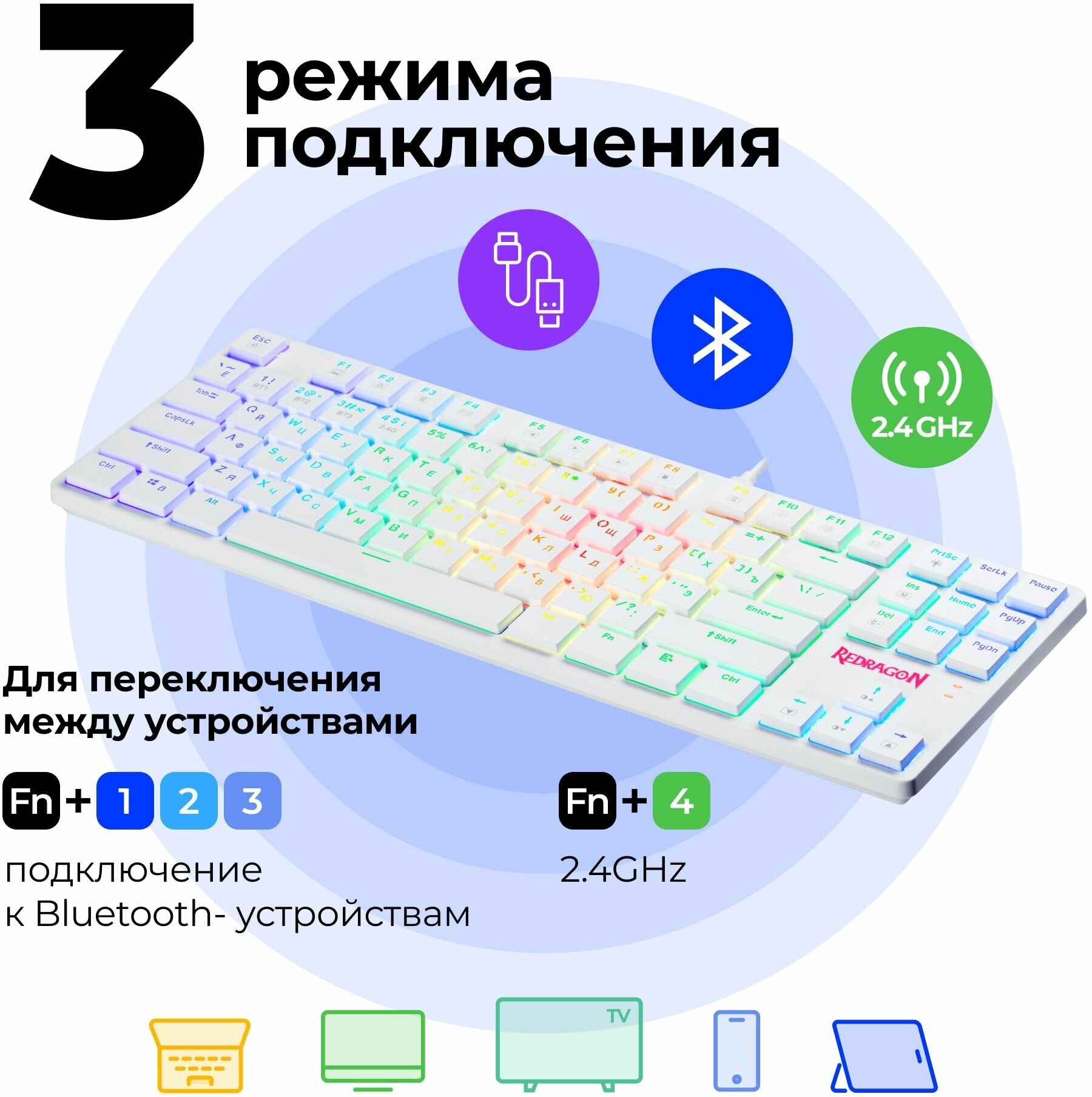 Беспроводная механическая клавиатура для компьютера Redragon Anubis RGB (80%) информация:
