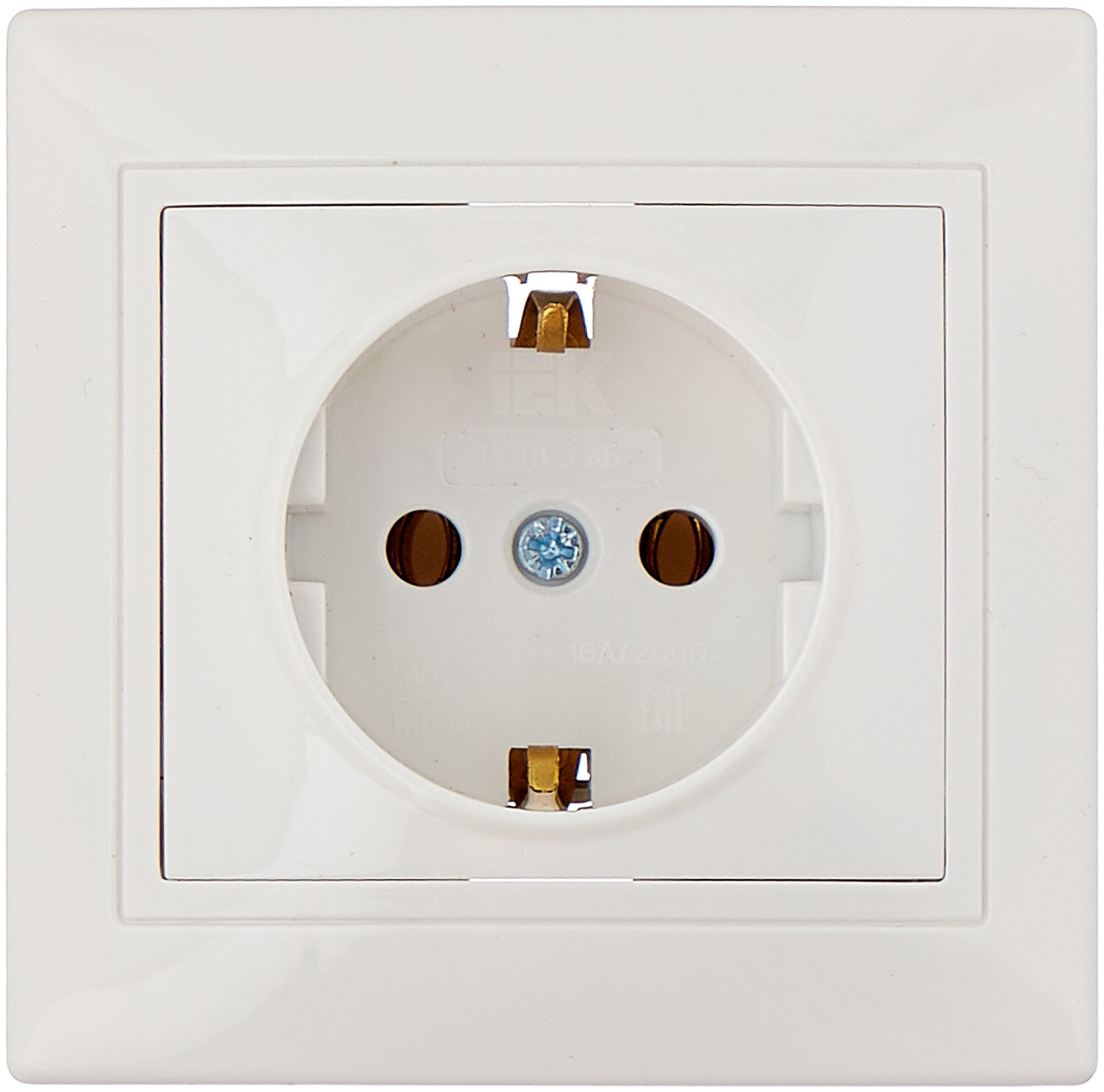 Розетка 1-местная РС10-3-КБ с заземляющим контактом без защитной шторки 16А кварта белый IEK