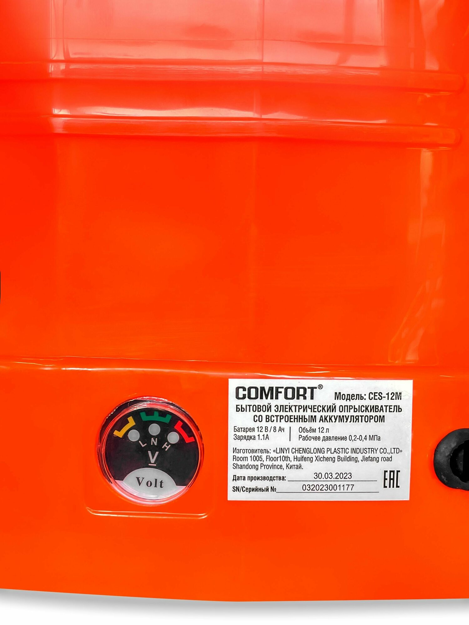Опрыскиватель аккумуляторный электрический COMFORT CES-12M, оранжевый 12 л (нержавеющая удочка, с регулятором расхода)