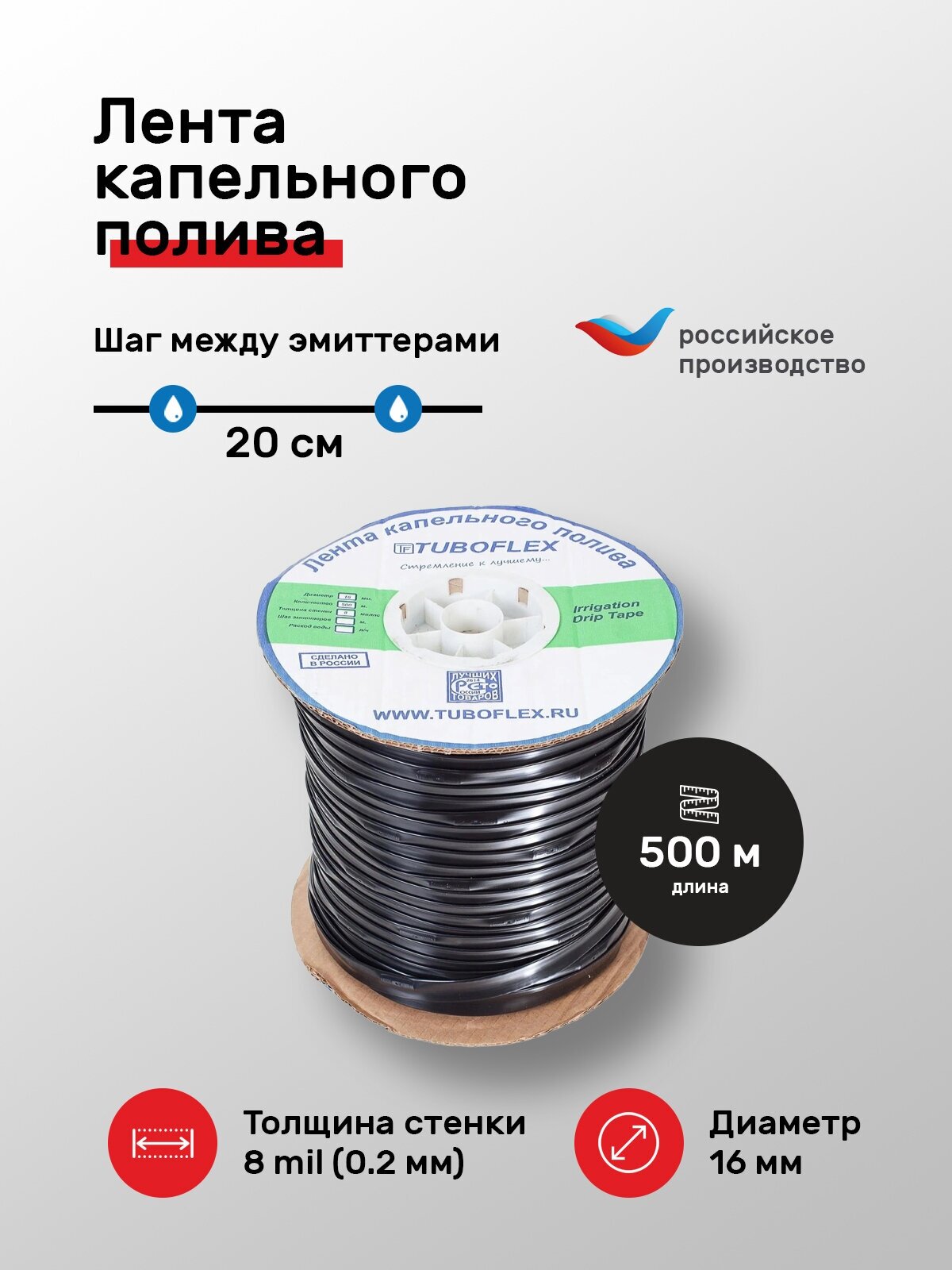TUBOFLEX Лента капельного полива 500 метров с шагом между эмиттерами 20 см ЛКП50002-8М 4620759669363